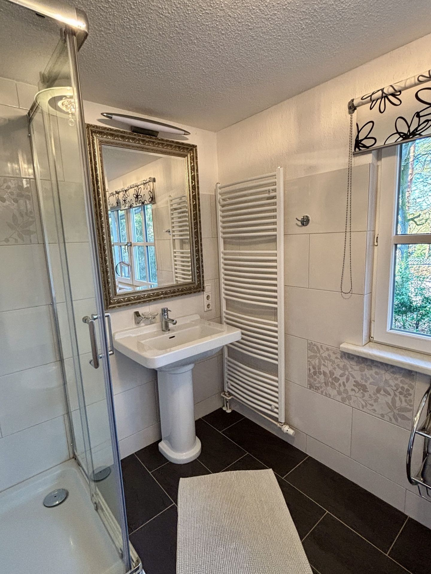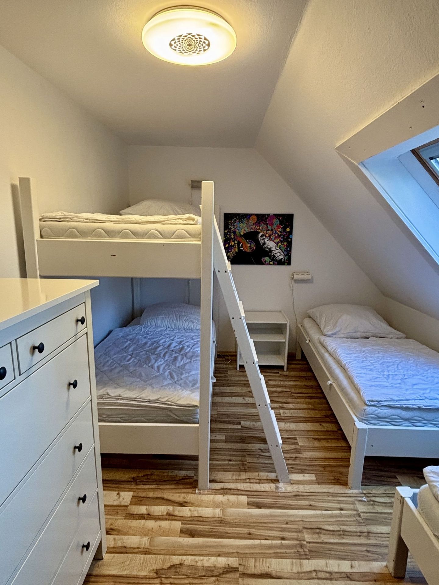 Diese Wohnung liegt direkt am Aufenthaltsraum und wird besonders gern von Gruppen, Kindergärten oder Familientreffen gebucht, die sich dann im angrenzenden Kaminraum gemeinsam Aufhalten, Essen und Feiern können.