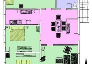Kombinierbar mit den Wohnungen Nr. 8 und 15, die mit in dem Haus liegen, können bis zu 25 Personen in diesem Objekt Platz finden.